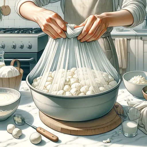 - Schüssel (zum Auffangen der Molke)