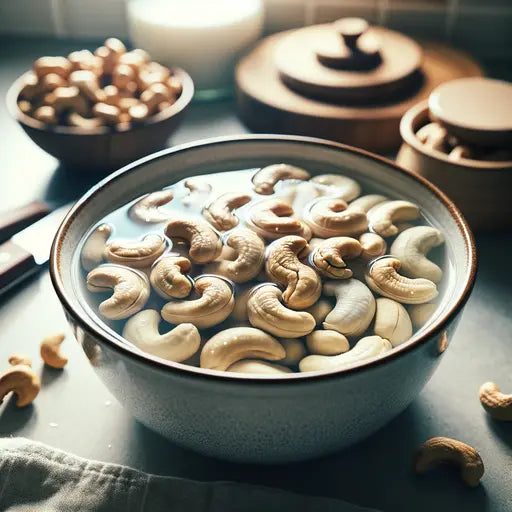 Die Cashewnüsse in eine Schüssel geben und mit Wasser bedecken. Mindestens 4 Stunden oder über Nacht einweichen lassen. Das weicht die Cashewnüsse auf und erleichtert das Mixen. Die Cashewnüsse nach dem Einweichen abtropfen lassen und abspülen.