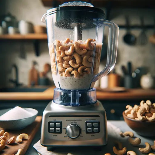 Die eingeweichten Cashewnüsse und 4 Tassen frisches Wasser in den Mixer geben. 1-2 Minuten auf höchster Stufe mixen, bis die Mischung glatt und cremig ist.